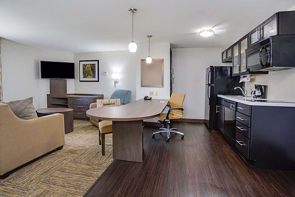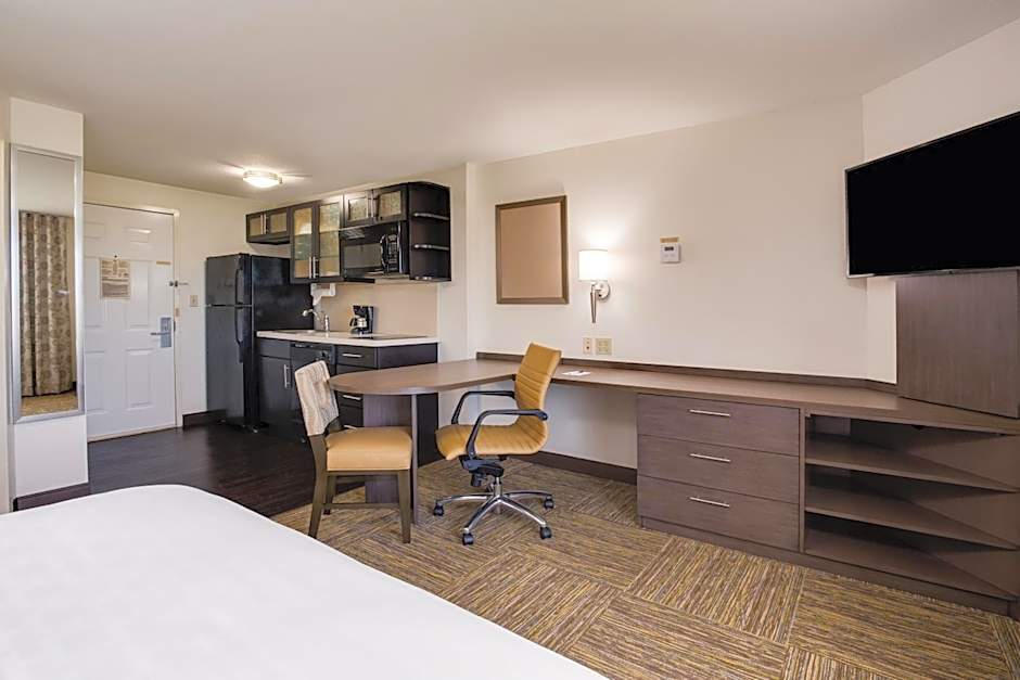 This accessible suite features a microwave, a small refrigerator, and a roll-in shower.
